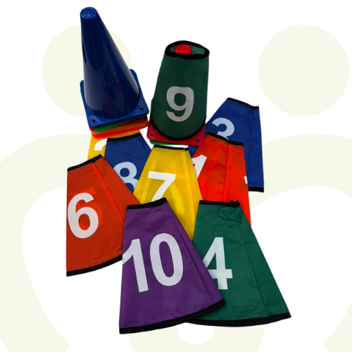 Deze genummerde pionhoesjes zijn de ideale tool om van je schoolplein of gang een interactieve leeromgeving te maken. Ze scheppen structuur en maken de route van een beweegvorm zoals de Speurtocht in één oogopslag duidelijk.