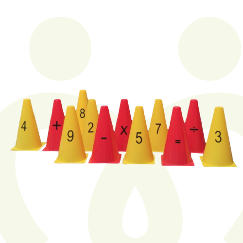 Leuk in te zetten tijdens een bewegend leren rekenles. Maak kaartjes met sommen, de kinderen pakken een kaartje met een som en brengen deze naar de pion met het juiste antwoord.
